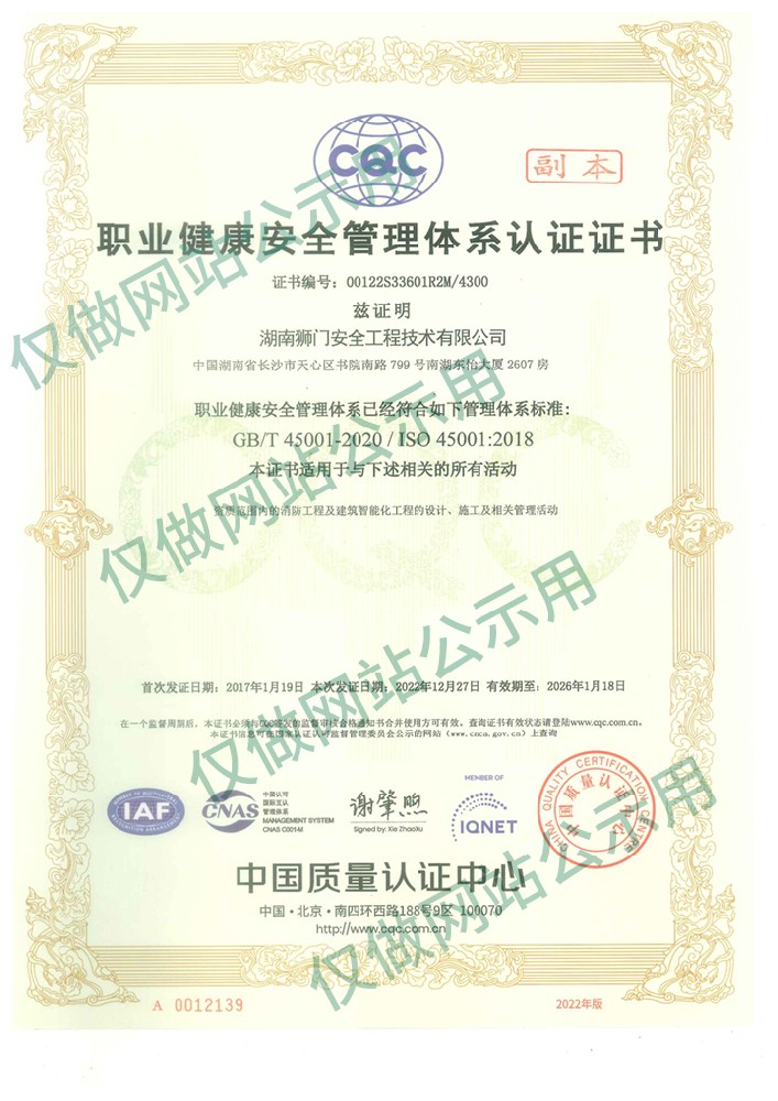 獅門(mén)已全面通過(guò)ISO45001職業(yè)健康安全管理體系,并嚴(yán)格執(zhí)行相關(guān)標(biāo)準(zhǔn)。