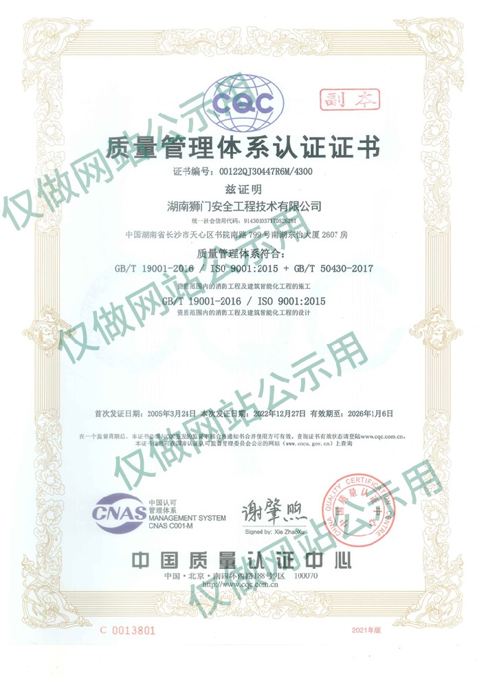 獅門(mén)已全面通過(guò)并嚴(yán)格推行ISO9001國(guó)際質(zhì)量體系,嚴(yán)格按照國(guó)際標(biāo)準(zhǔn)為用戶(hù)提供優(yōu)質(zhì)全面的服務(wù)。